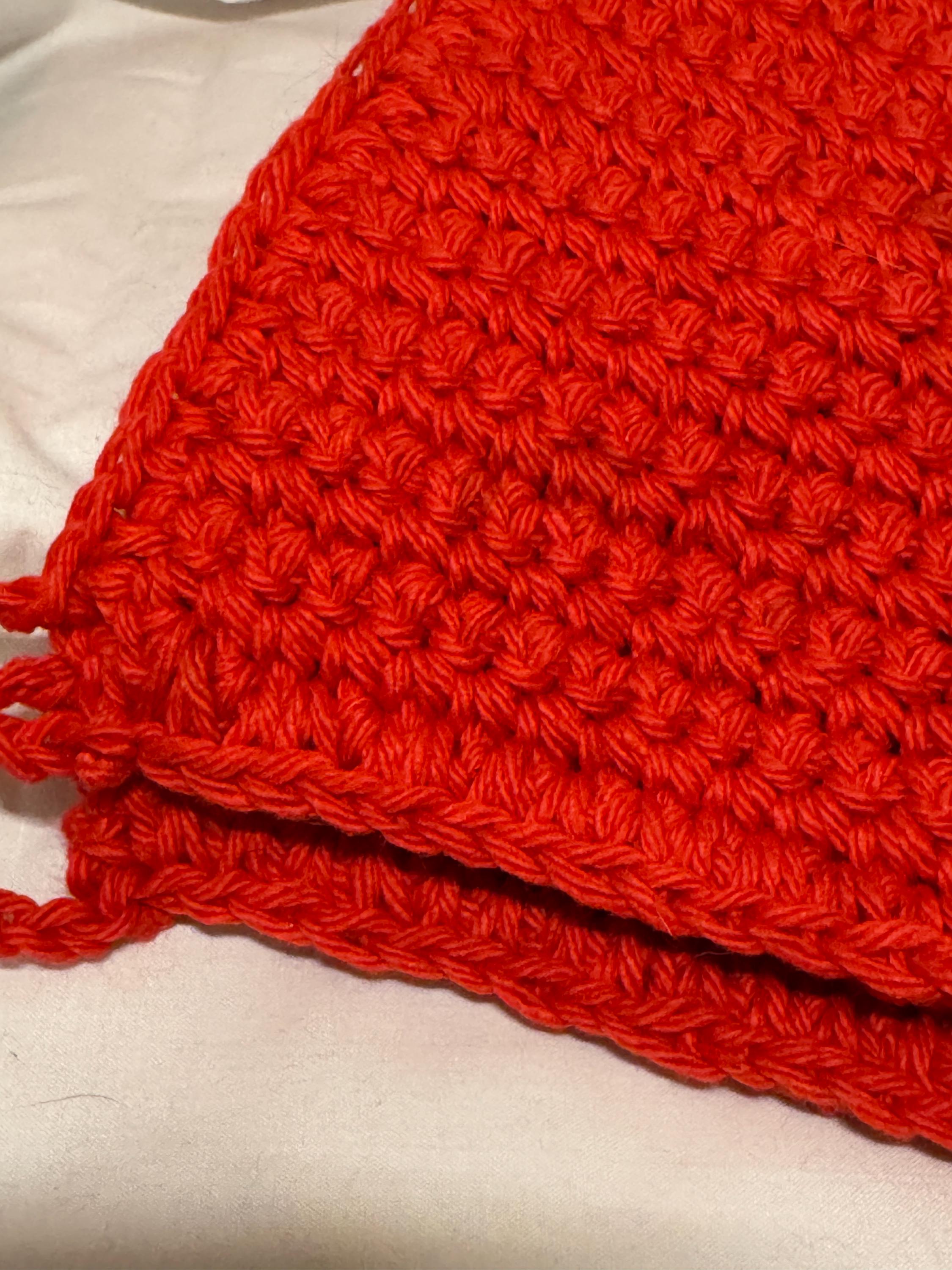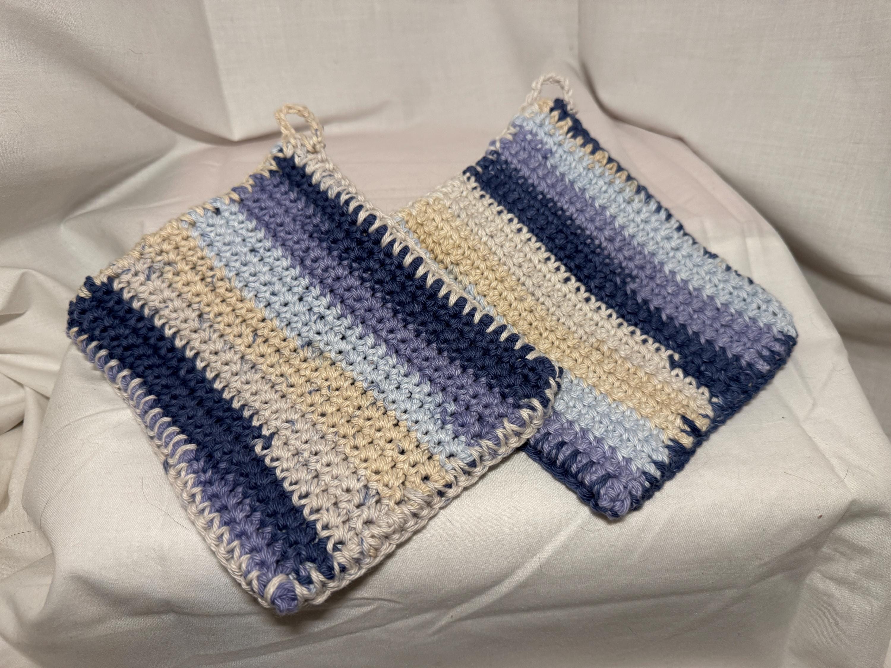 These double-thick Handmade Potholders are made from 100% cotton yarn Set of 2. Size approximately 7.5 inches x 6 inches x 0.5 inches thick. Each one made by hand with love and care by my Momma who has crocheted for over 50 years.