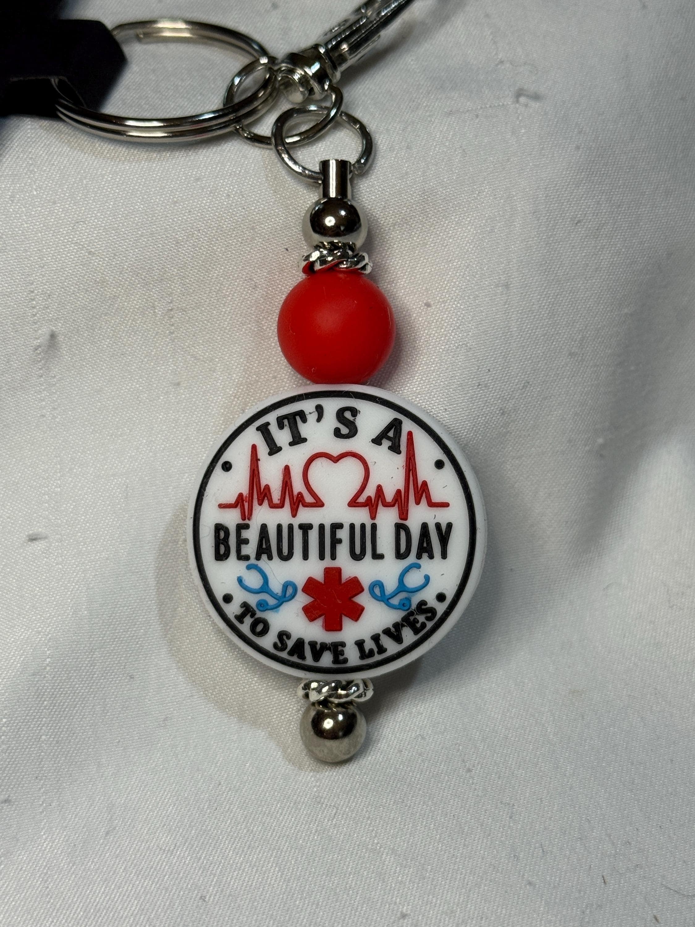 Keychain Healthcare worker inspired saying “It’s a beautiful day to Save lives”