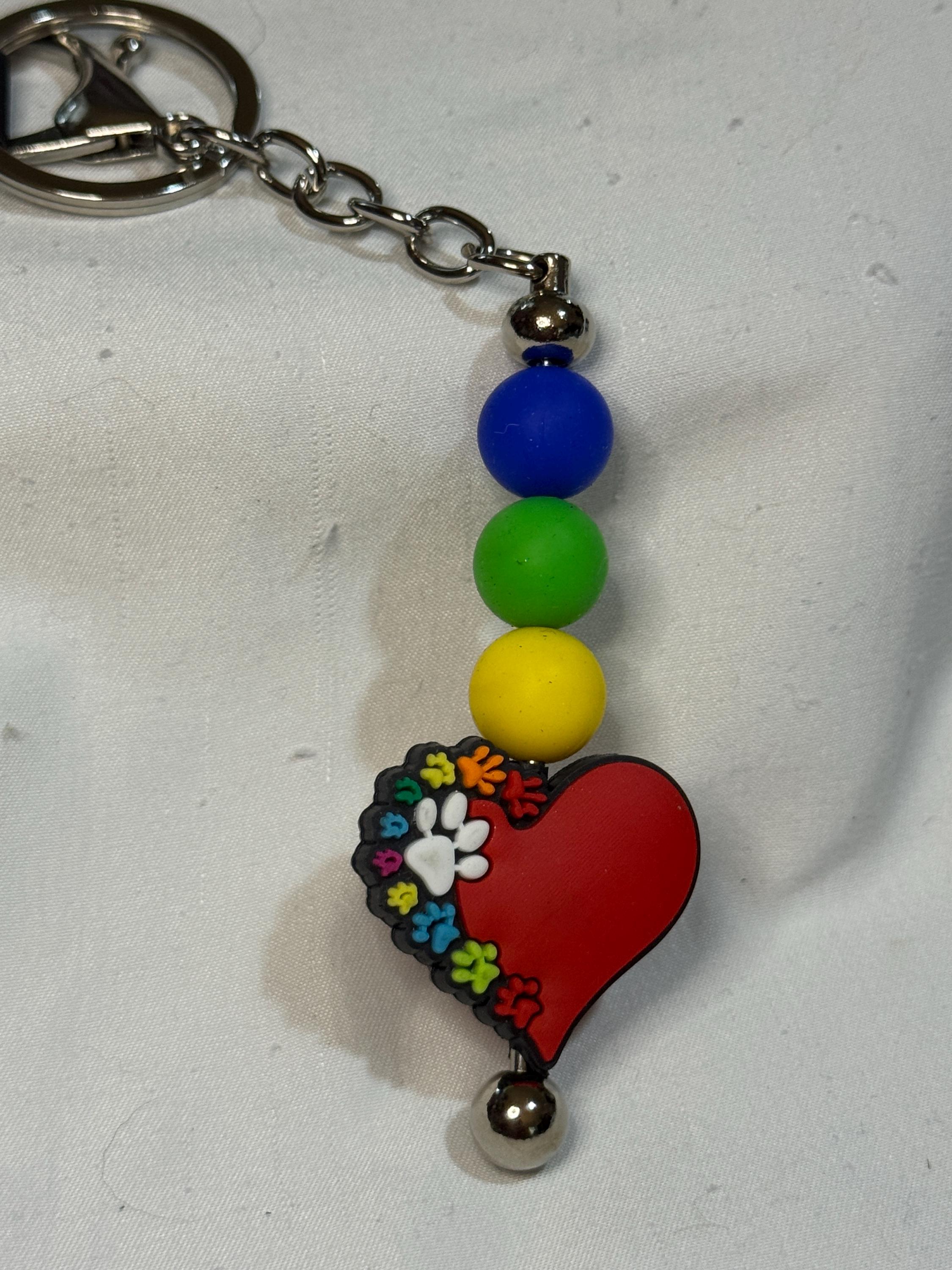Keychain inspired by love of animals with heart and paw print