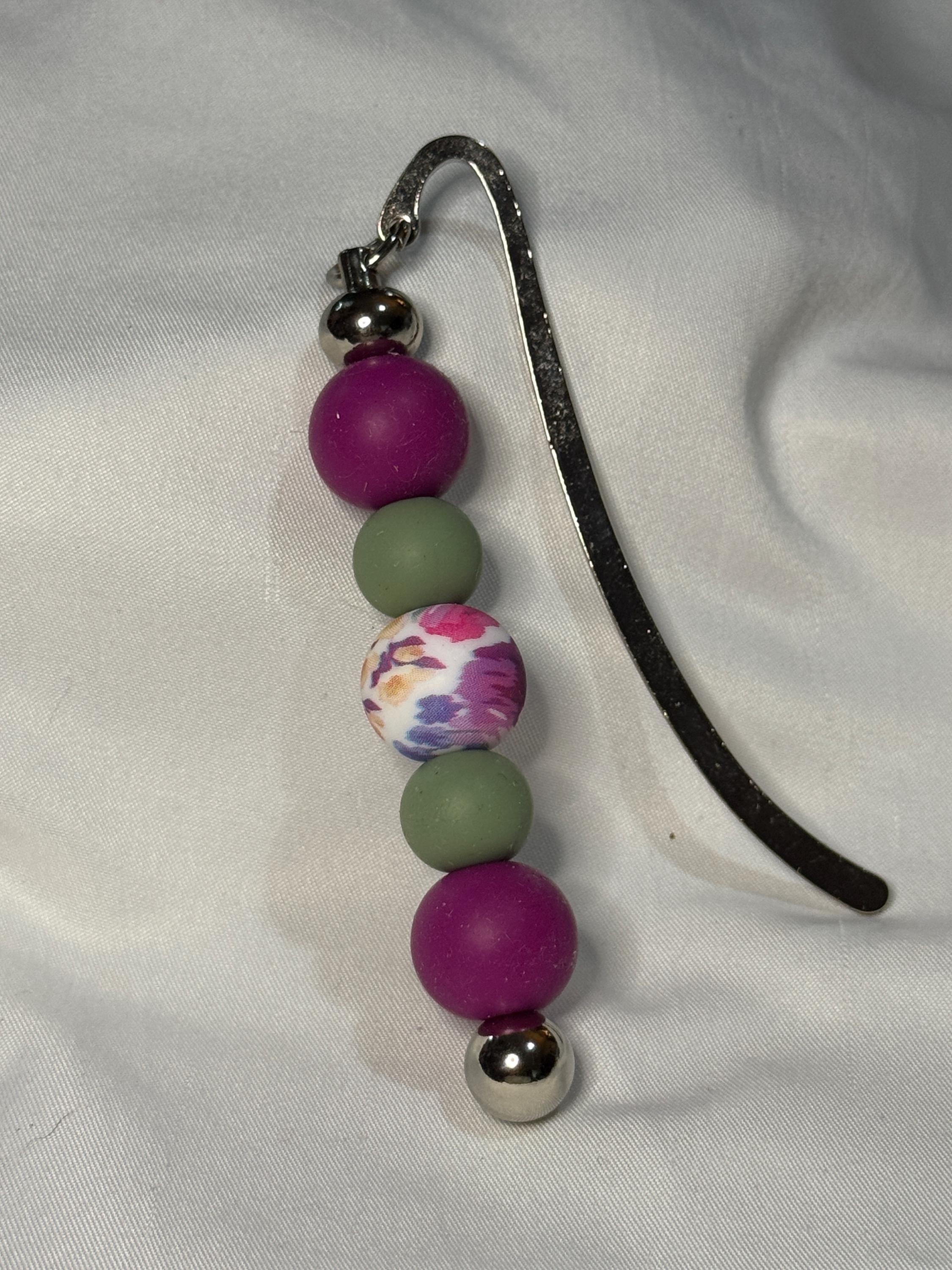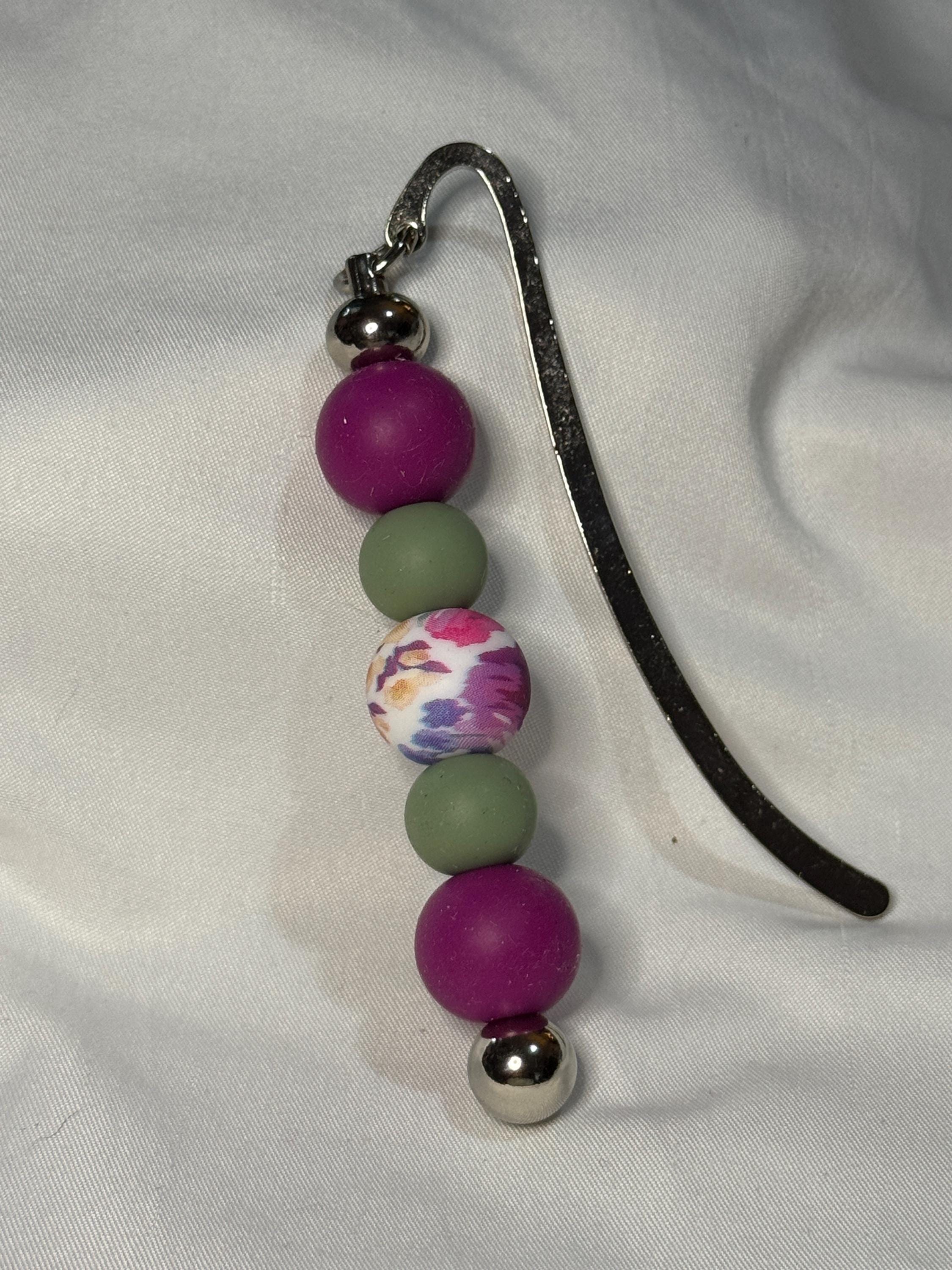 Bookmark reading enthusiasts enjoy this bookmark hook with Fuschia and Sage green floral Bookmark