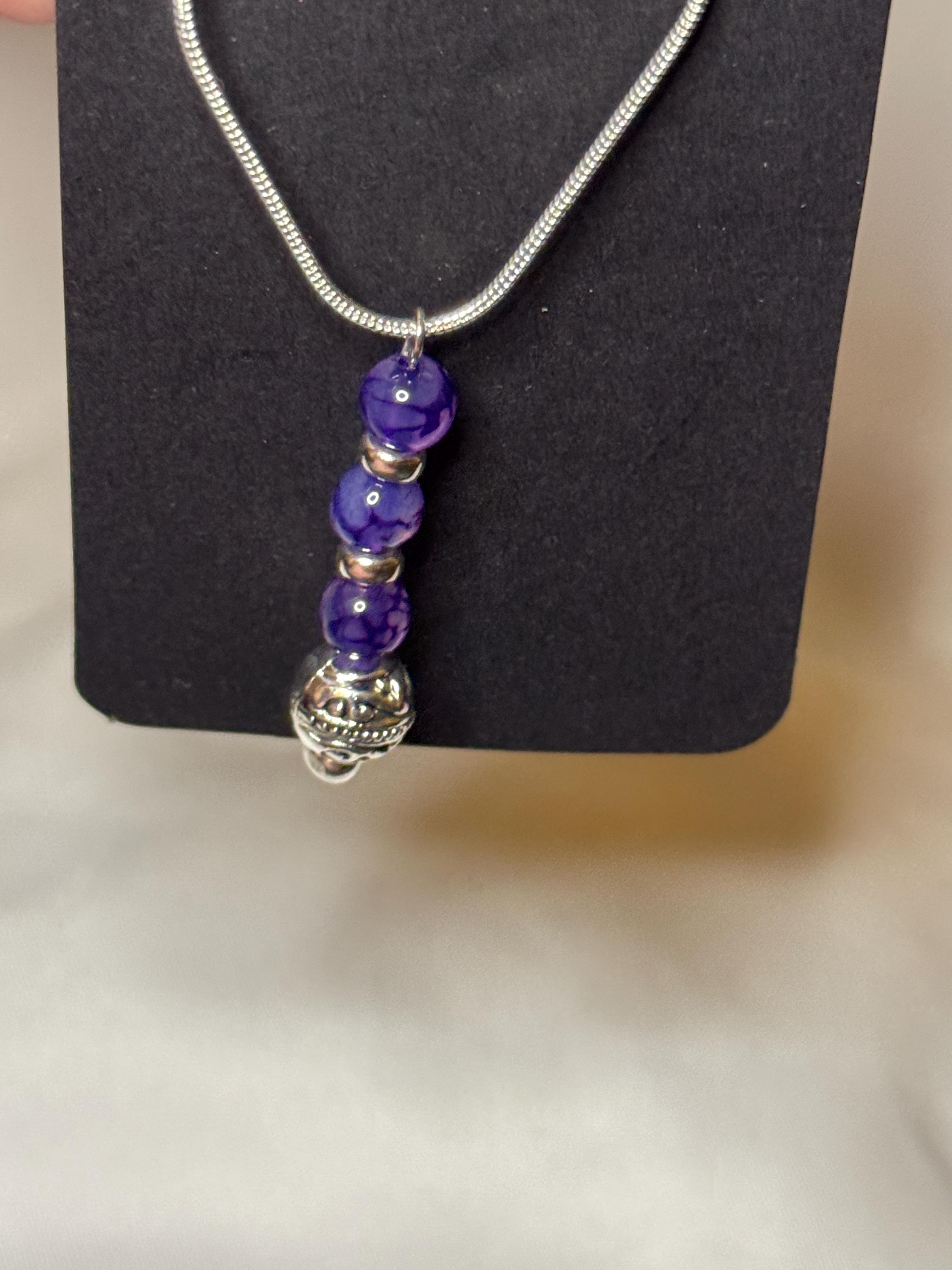 22 inch Sterling Silver Necklace with handmade Purple Agate Stones with sterling silver spacers and zinc alloy bead charm.