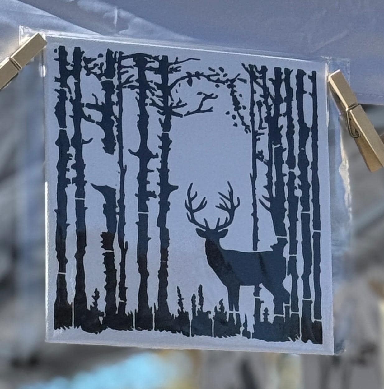 Acrylic paintings on 8x8 unframed canvas with theme Deer Silhouette in forest