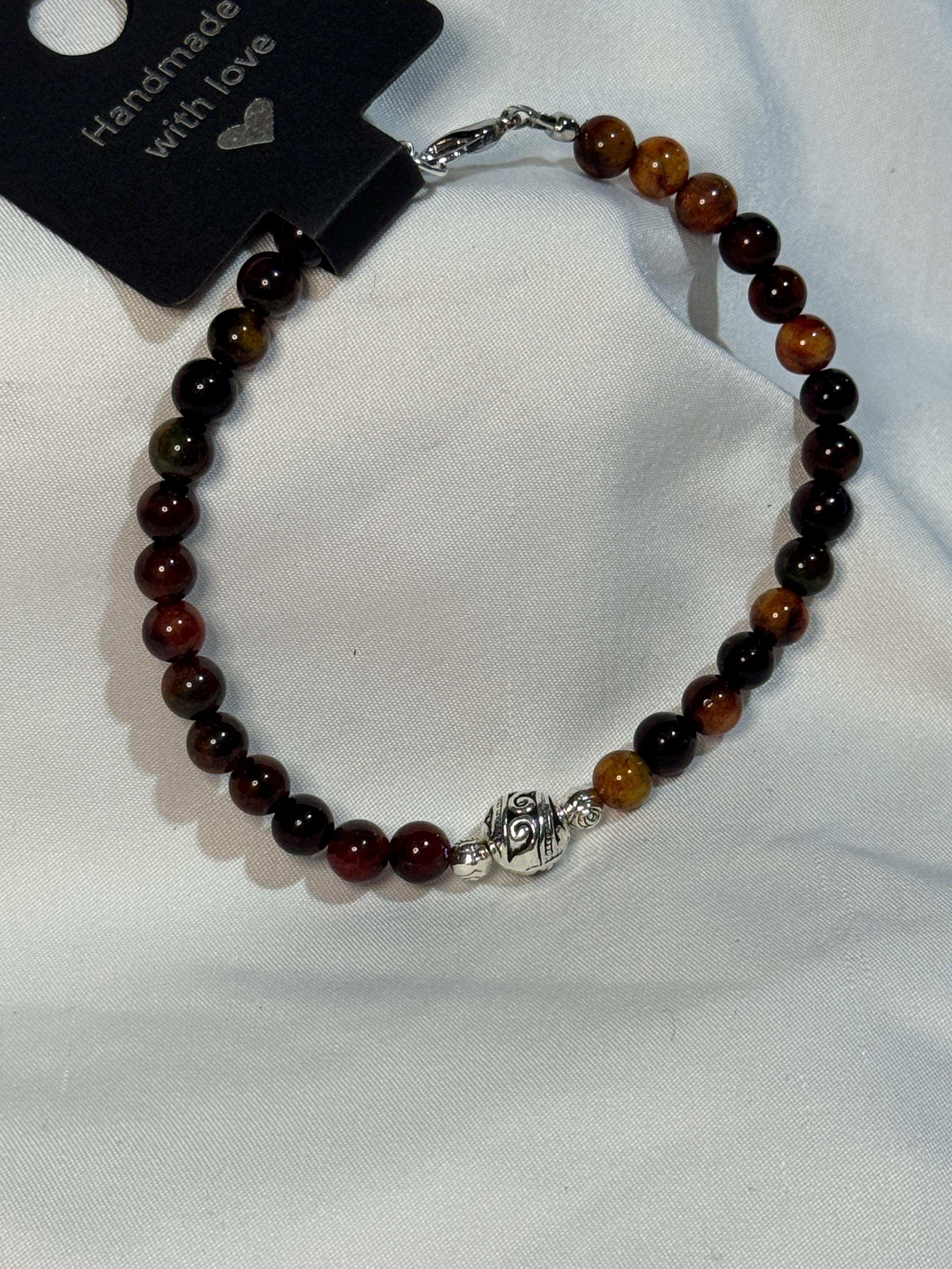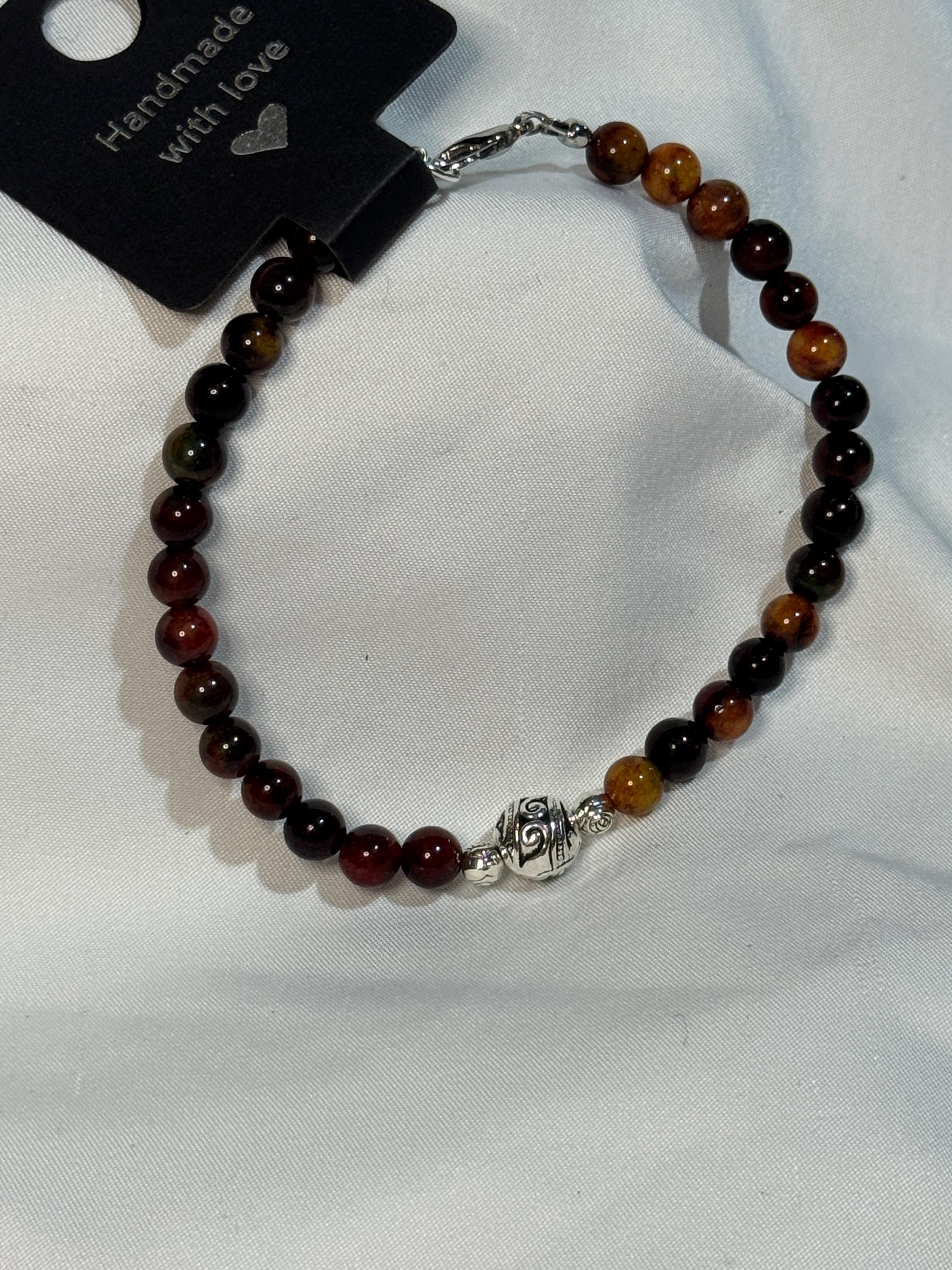 Natural 6 mm Phoenix Stone beads, with 8 mm natural sea sediment bead, with heart zinc alloy spacers. Zinc alloy toggle closures. Handmade with love.